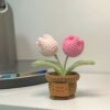 - Mỗi chậu hoa đều được làm bằng tay, mang vẻ đẹp riêng và sự tinh xảo trong từng mũi móc.