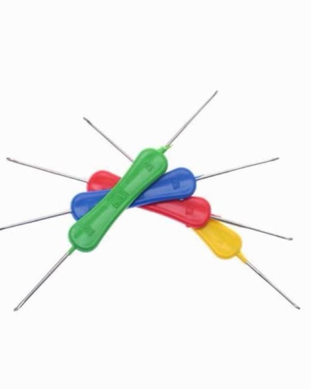 Kim móc len 2 đầu cán nhựa là dụng cụ để móc len sợi milk cotton. Sản phẩm có thiết kế 2 đầu kim khác size trên cùng một cây, giúp bạn dễ dàng thay đổi khi móc nhiều kiểu sản phẩm. Phần cán nhựa bền nhẹ, cầm êm tay, hỗ trợ móc lâu không bị mỏi.