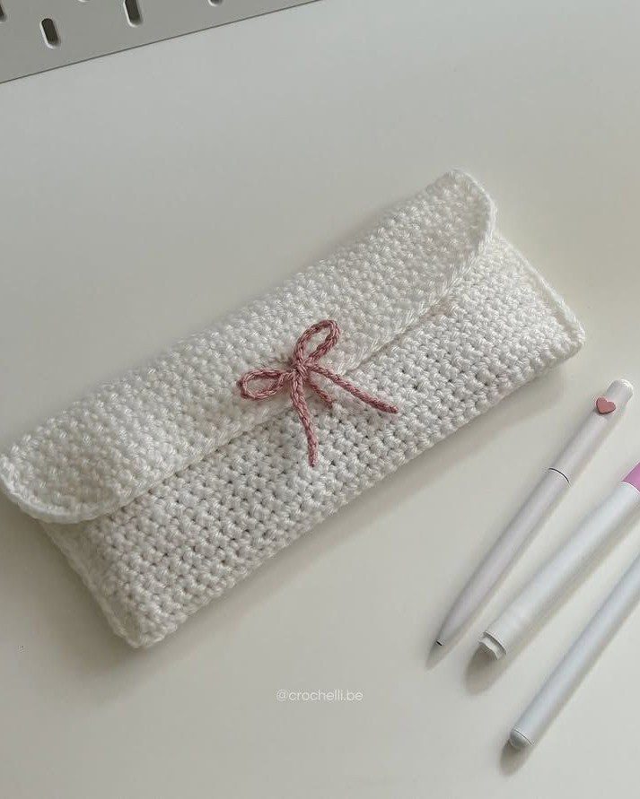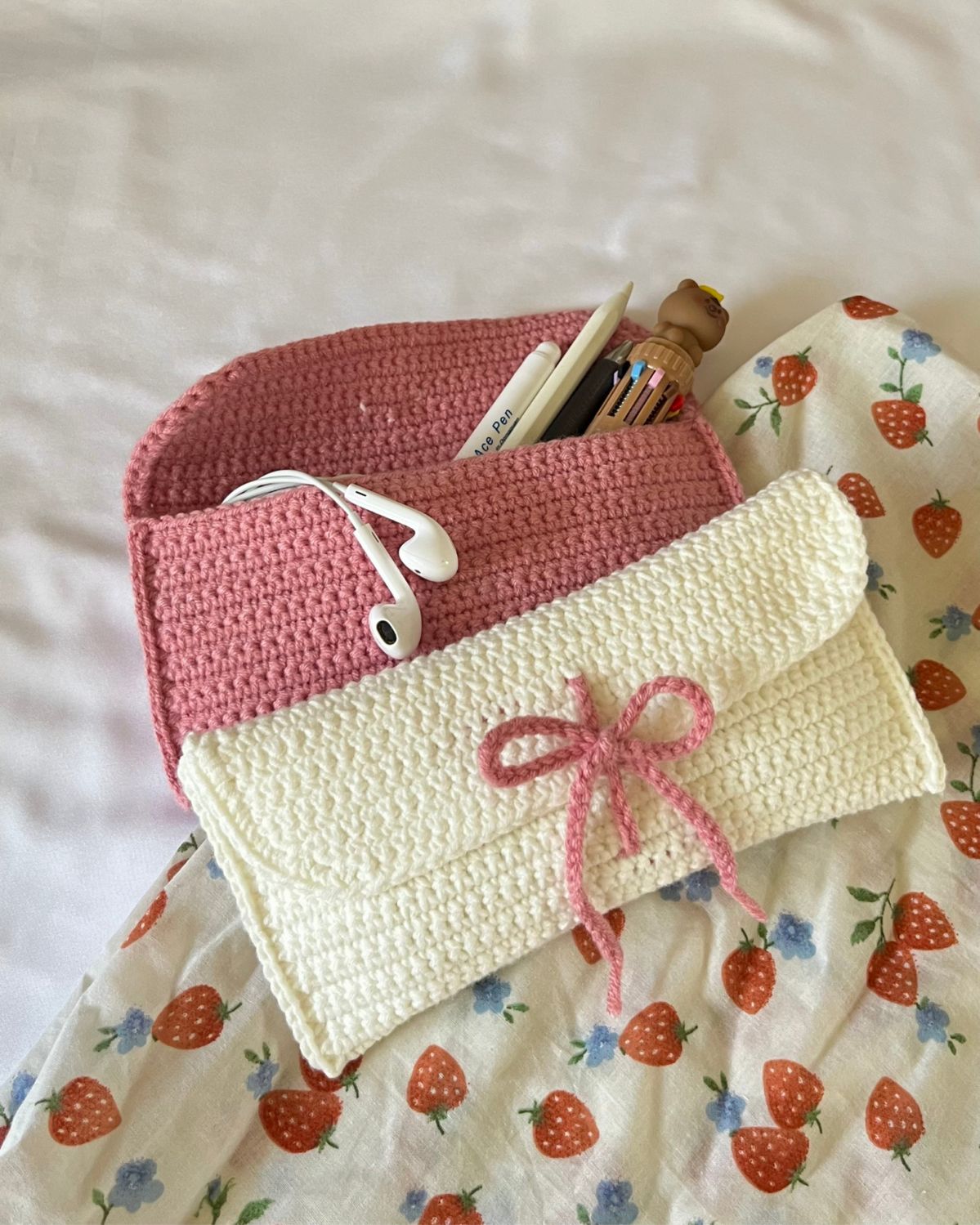 Ví Len Dài Thắt Nơ được móc thủ công từ sợi len cotton mềm mịn, nổi bật với chi thiết nơ xinh xắn. Ví được thiết kế với dáng dài tiện dụng, phù hợp đựng bút, hoặc cọ makeup. chiếc túi này phù hợp với mọi đối tượng, từ học sinh, sinh viên đến dân văn phòng, mang lại cảm giác thoải mái và nhẹ nhàng khi sử dụng.